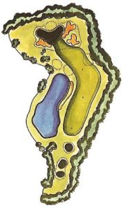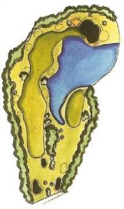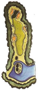 A jewel. A large lagoon will accept tee shots short or left. The green is protected by a large oak and a mound in front.
