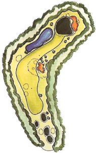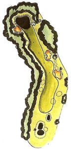 Longest green on the course. ‘C’ shape green can be a three club difference between a front hole and a back hole placement.